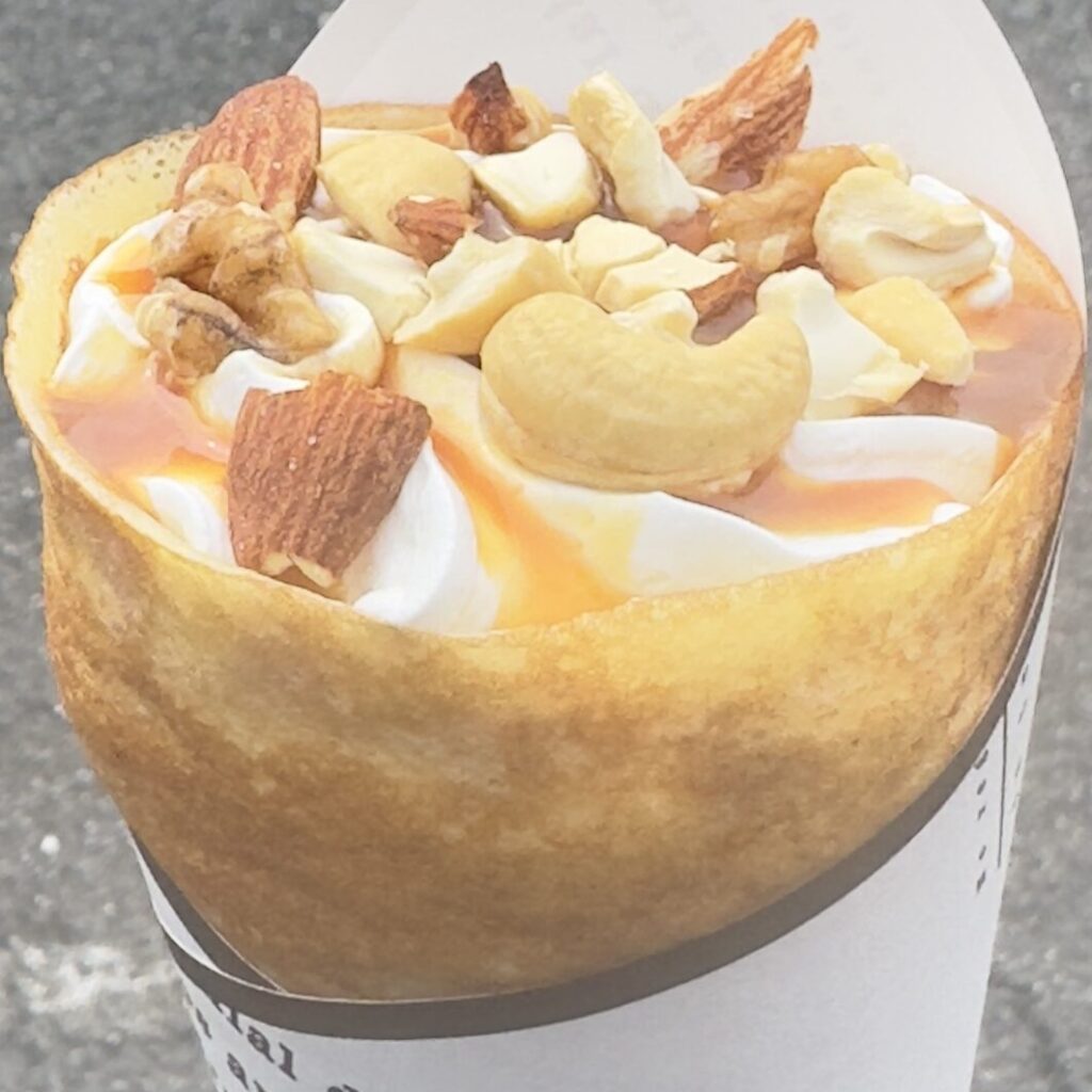 クロッフル、ワッフル、ミニパフェ、揚げ物各種、カツカレー、牛丼など